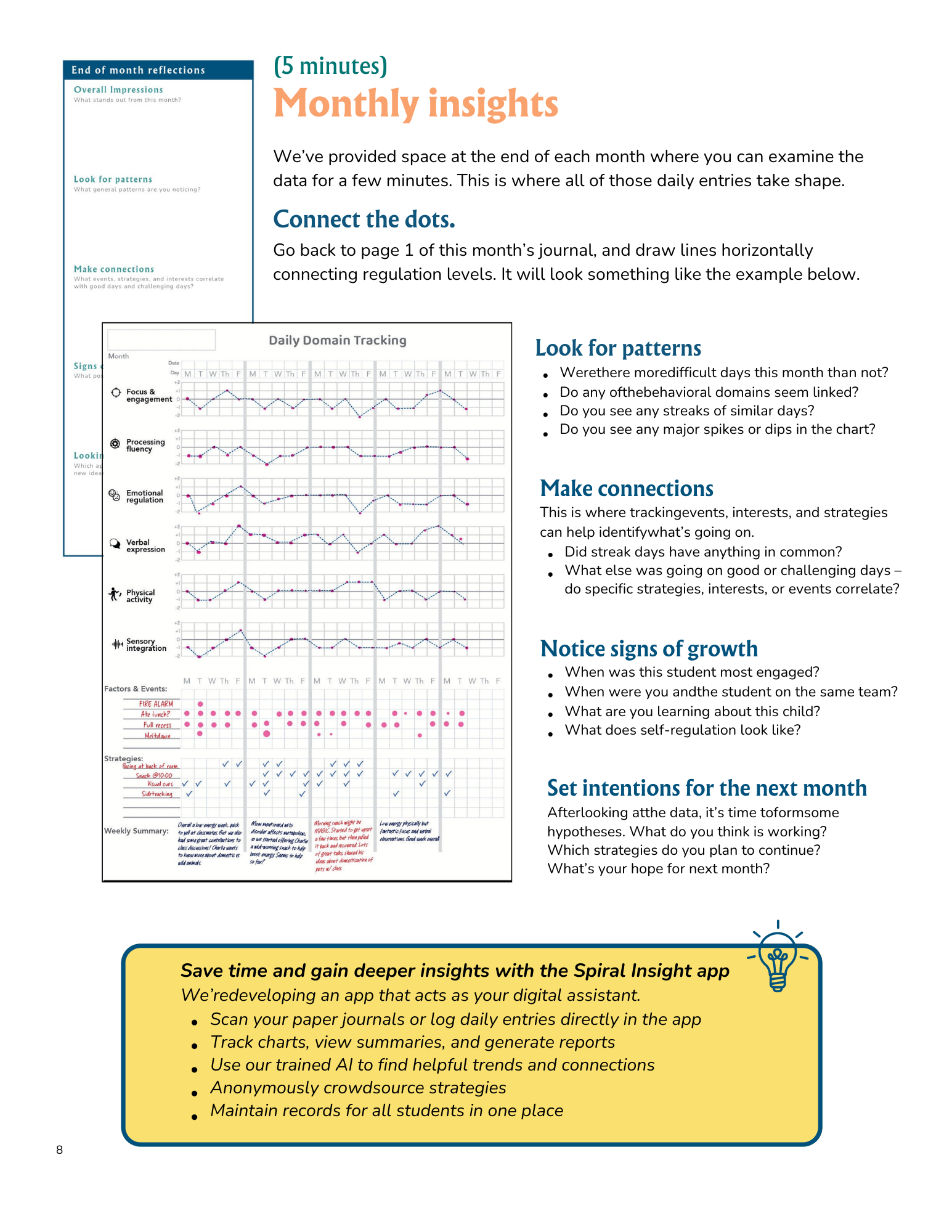 Monthly reflections help educators step back and consider development across time: